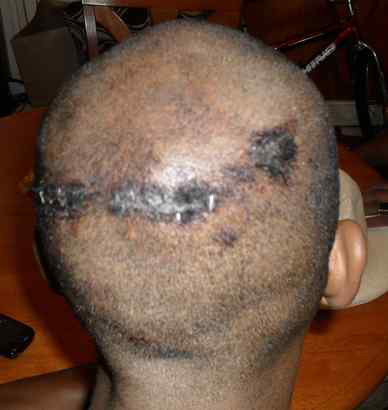 Pbeat10. These photos are from attorney Evan Hughes. The photo of the back of the man’s head … that’s Askia Sabur, who received 6 stapeles from the incident with police.