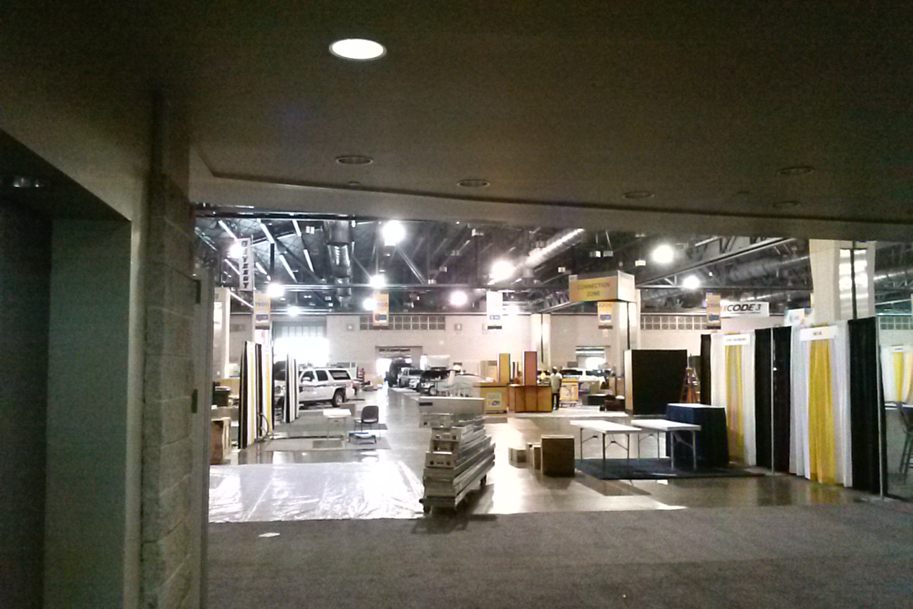 The decor is extensive in the lobby and concourse areas – we sneaked a peek into one of the expo rooms which was crowded and busy with vendors and departments erecting displays.