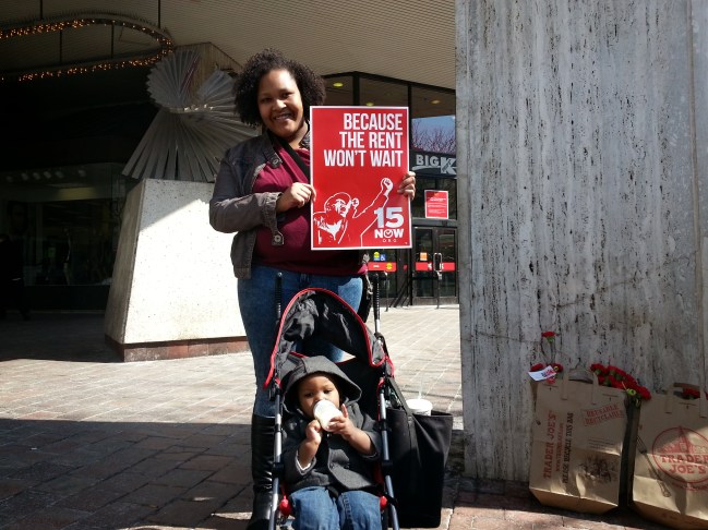 20140308_120731 Published on March 8, 2014 in On International Women’s Day, Bold Street Actions in Philly for Living WageFull resolution (3264 × 2448) Next > Robyn Richardson, a single mother and restaurant employee.