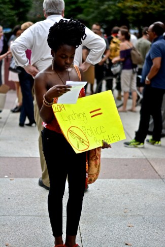 DSC_0071 Published on August 22, 2014 in PHOTOS: Two days of #Ferguson protests in PhillyFull resolution (2000 × 3000) < Previous Next > Lady reads a flyer handed out.