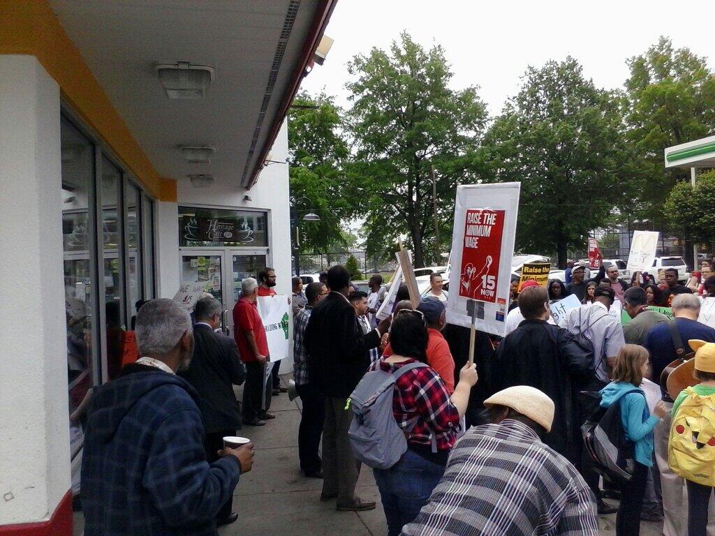 BnrWKtkIcAEbFDQ Published on September 2, 2014 in Philly Fast Food Workers To Participate in Largest Strike Yet on ThursdayFull resolution (1024 × 768) Next > Striking fast food workers block the entrance to the McDonald’s on Broad St. at Girard Avenue, May 15, 2014. Photo by Kenneth Lipp