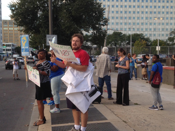 firstdayschool090814 Published on September 8, 2014 in It’s Back-to-School-Day as Students Face $81 Million Deficit, MoreFull resolution (600 × 450) Demonstrators outside Benjamin Franklin High School this morning. Photo: Emily Babay/Staff