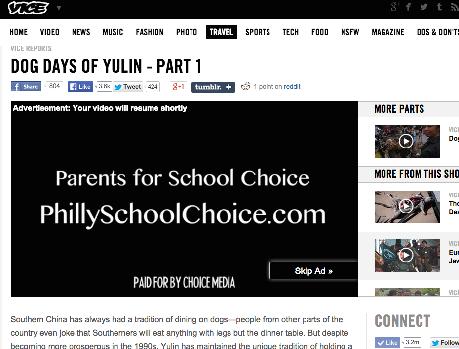 I then thought it was interesting that an organization that describes itself as “an effort to bring together groups of parents and taxpayers who believe that school choice should be a reality for all families in Philadelphia” would have the creative mindset to use VICE as an advertising outlet.
