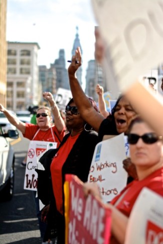 DSC_0223 Published on October 16, 2014 in As Talk of a General Strike Swirls, Teachers, Students, Parents Rally Against SRC’s Contract CancellationFull resolution (427 × 640) < Previous Next > Philadelphia Federation of Teachers and supporters rally in front of the School District building. Photo: Joshua Albert