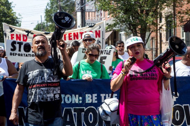 IMG_0623-5 Published on July 25, 2016 in DNC Day One: Immigrant Rights Advocates Call on Clinton to End DeportationsFull resolution (1800 × 1200) < Previous Next > Marchers move through Center City Philadelphia on Monday morning. Photo: Kristi Petrillo/The Declaration