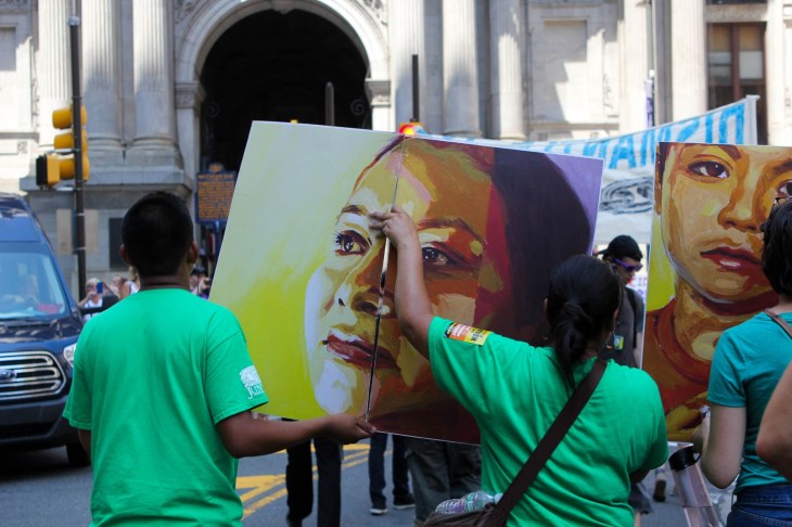 IMG_0678-6 Published on July 25, 2016 in DNC Day One: Immigrant Rights Advocates Call on Clinton to End DeportationsFull resolution (1800 × 1200) < Previous Immigrant rights marchers approach City Hall Monday morning. Photo: Kristi Petrillo/The Declaration